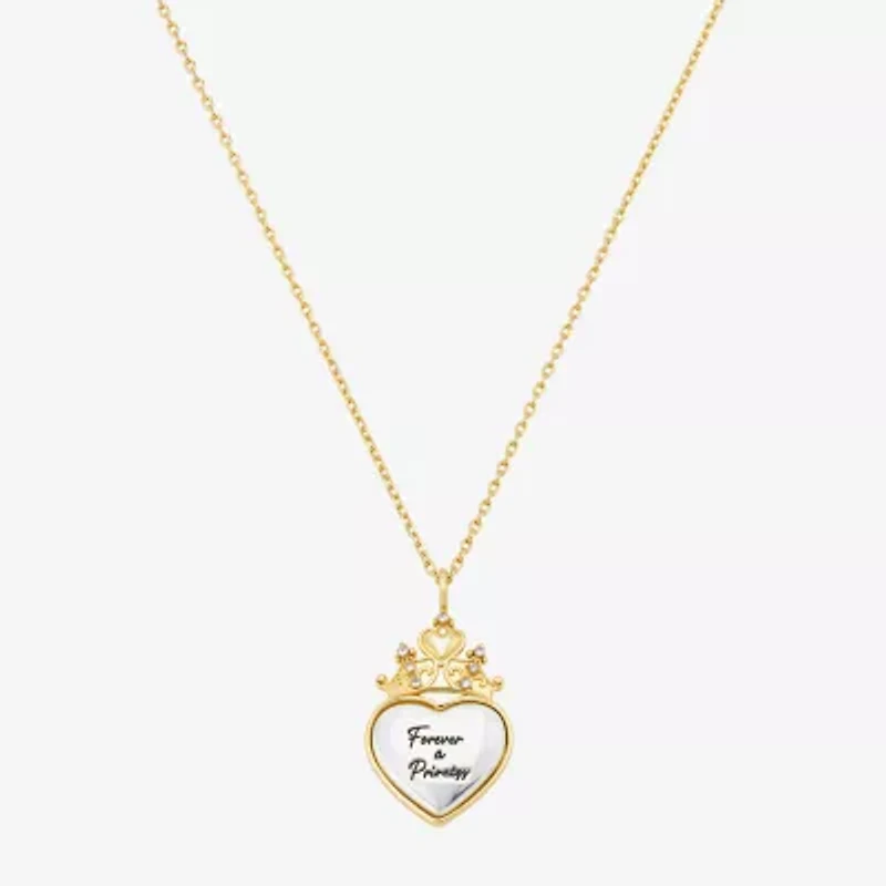 Disney Classics Womens Crystal 10K Gold Over Brass Pure Silver Over Brass Heart 16 Inch Pendant Necklace