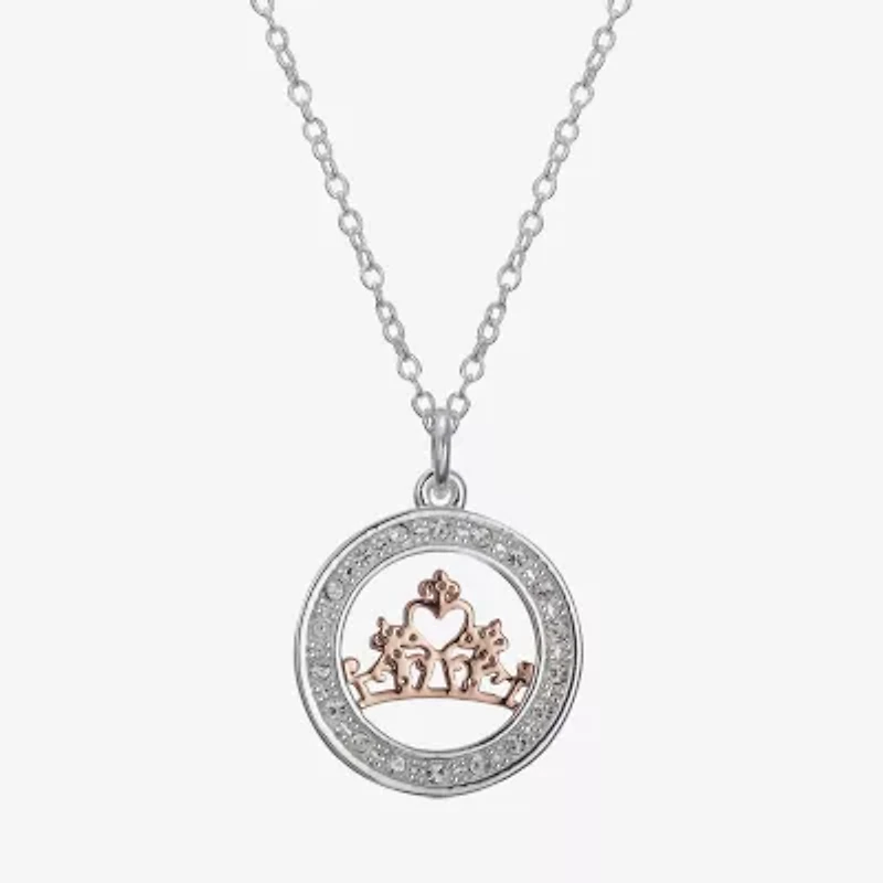 Disney Classics Womens Crystal Pure Silver Over Brass Crown 18 Inch Pendant Necklace