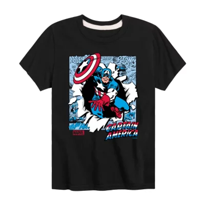 Disney Collection Brave New World Little & Big Kid Boys Crew Neck Short Sleeve Captain America Marvel Graphic T-Shirt