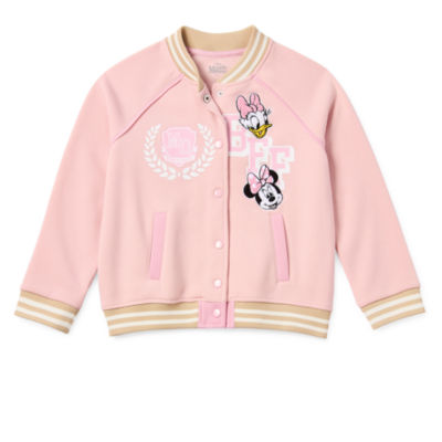 Disney Collection Little & Big Girls Fleece Minnie Mouse Lightweight Varsity Jacket