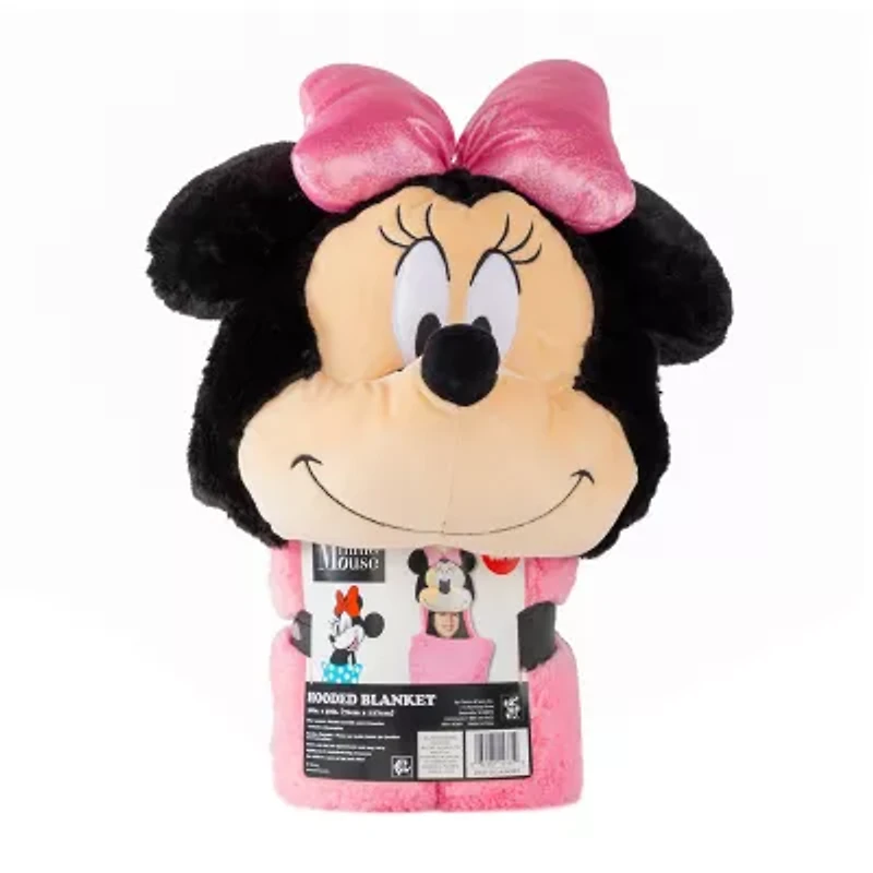 Minnie Mouse fans are going to love this amazing hooded. Sure to be a hit in every Disney fan's room. Soft and vibrant, this item is even better in person. Hooded blanket measures 30" x 50". This item is machine wash cold and tumble dry low. It consists of 100% polyester.