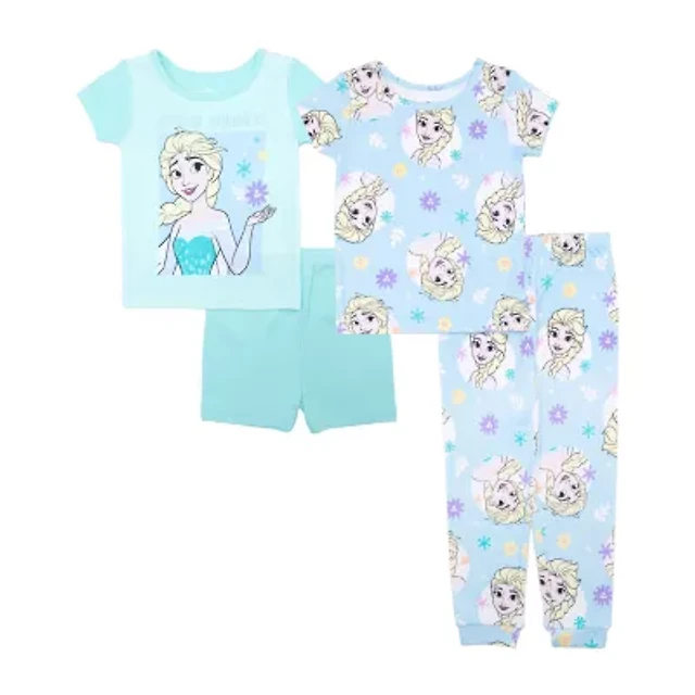 Disney Collection Toddler Girls Frozen Crew Neck Short Sleeve 4-pc. Pajama Sets