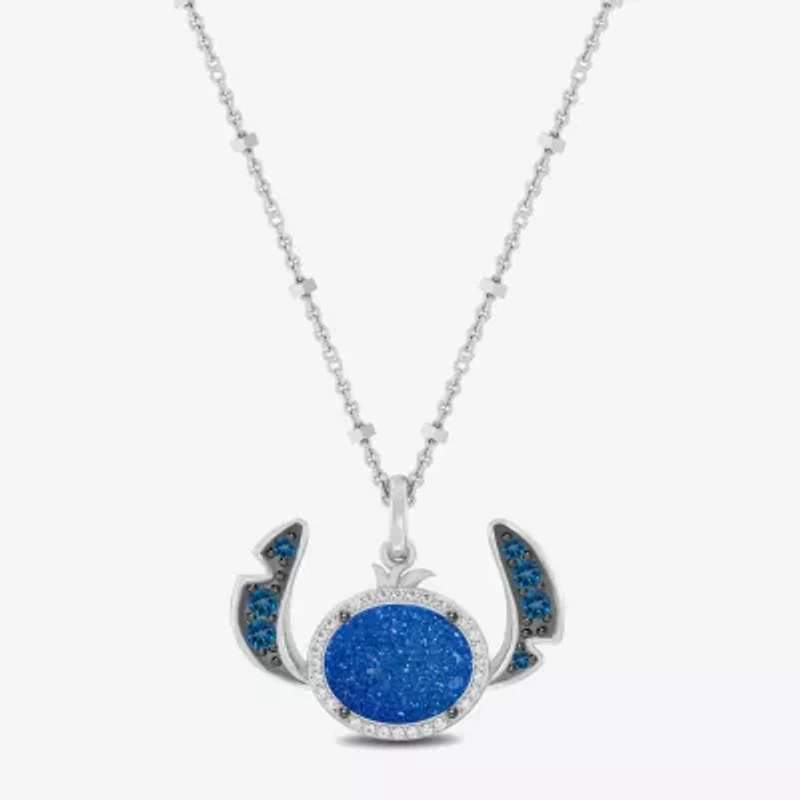 Disney Jewels Collection Lilo And Stitch Womens 1/10 CT. T.W. Genuine Blue Drusy Sterling Silver 18 Inch Pendant Necklace