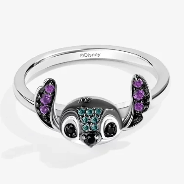 Disney Jewels Collection Womens 1/10 CT. Natural Blue Diamond Sterling Silver Lilo & Stitch Cocktail Ring