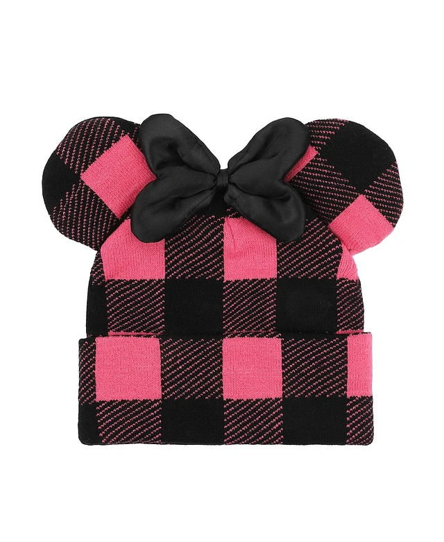 Disney Minnie Mouse Ears Pink Plaid Cuff Beanie