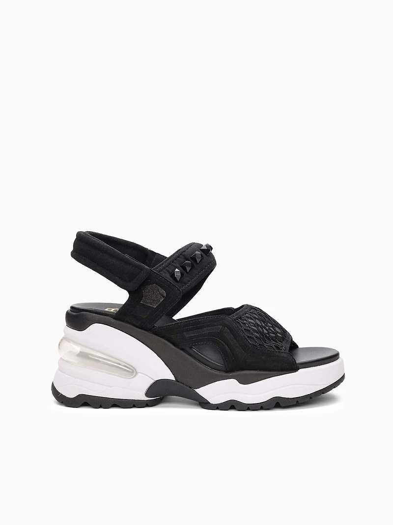 Add a bold touch to your casual wardrobe with the Diva Wedge Sandal. Featuring sleek black mesh and edgy studded straps, this high contrast design offers a perfect blend of comfort and style. The cushioned footbed and supportive wedge make it a versatile choice for everyday wear with a fashion-forward flair.