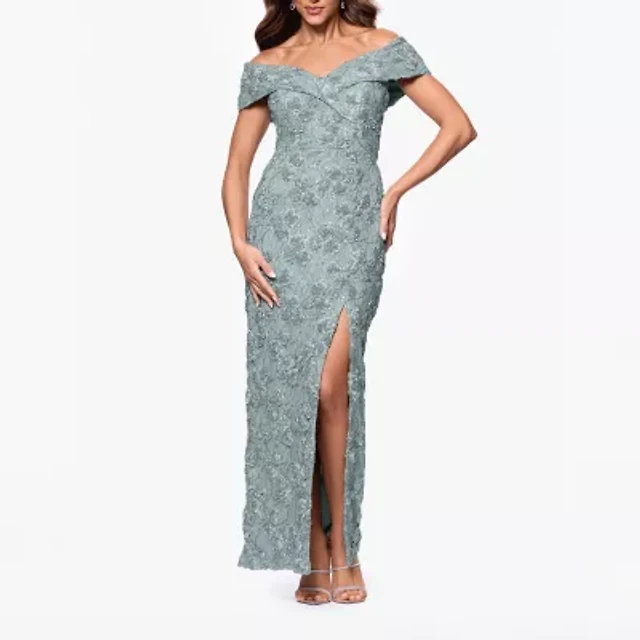 Premier Amour Off The Shoulder Womens Short Sleeve Evening Gown