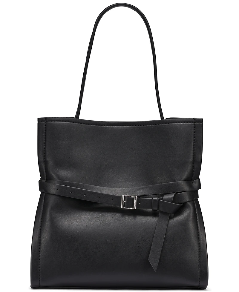 Modern utility shapes this Dkny bucket bag, with a top handle and snap closure for a secure, grab-and-go functionality. Medium proportions fit a tablet with ease, and exterior slip pockets keep essentials within reach.