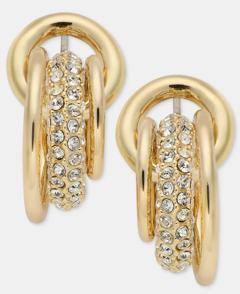 Dkny Gold-Tone Crystal Pave Shaky Ring Doorknocker Earrings