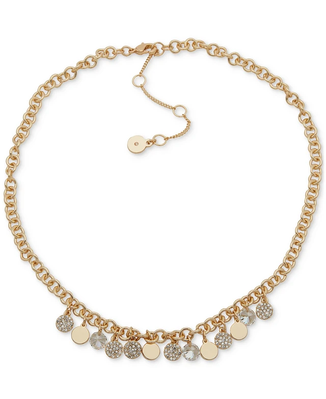 Dkny Gold-Tone Pave Disc Charm Dangling Collar Necklace, 16" + 3" extender