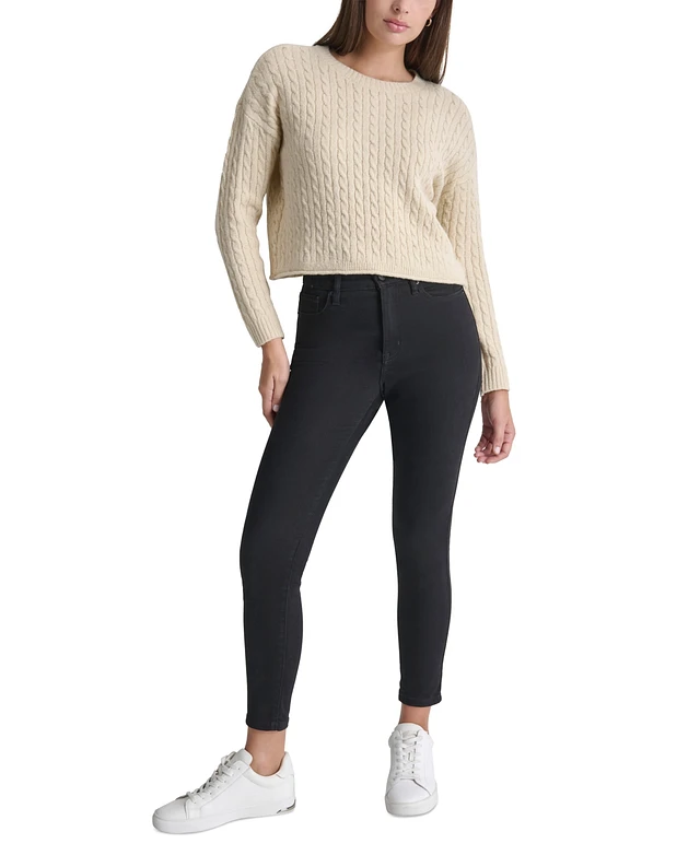 Dkny Jeans Petite Crewneck Cable-Knit Sweater