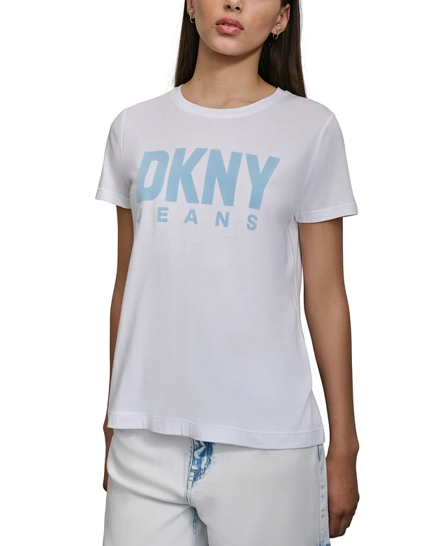Dkny Jeans Women's Flocked-Logo Short-Sleeve Crewneck T-Shirt - Ghs
