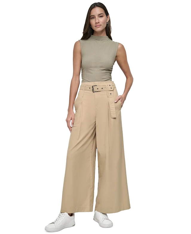 Dkny Jeans Women's High-Rise Pleated Wide Leg Trousers