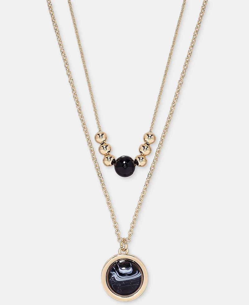 Dkny Jet Two Row Cabachon Pendant Necklace