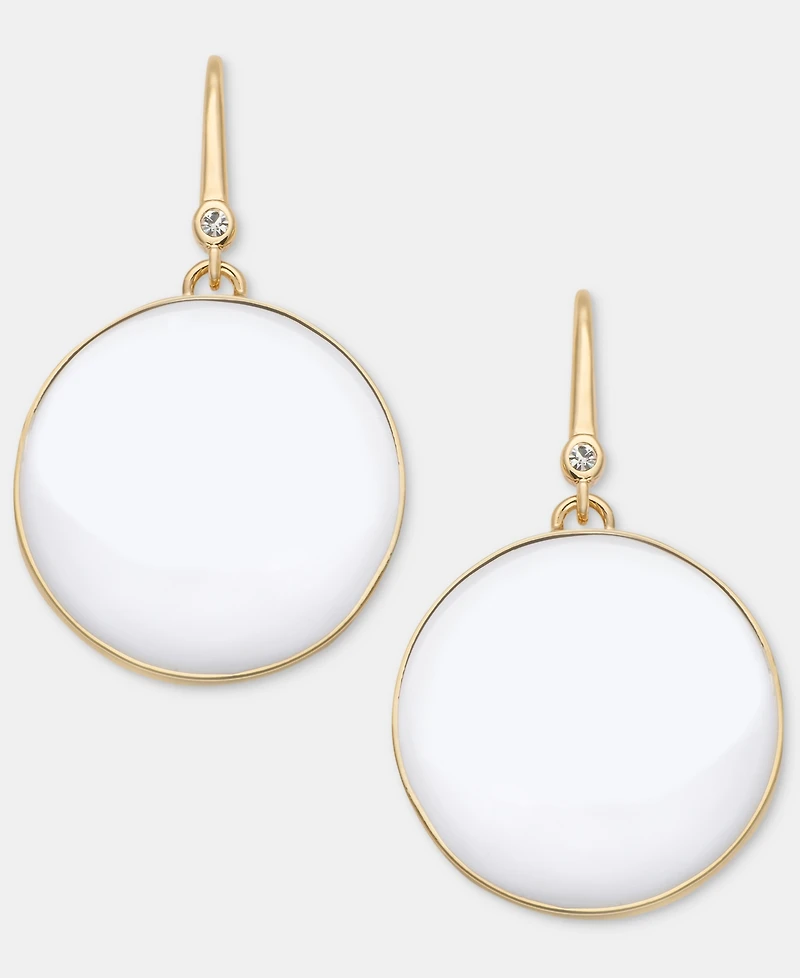 White enamel disks lend a pop of color to these dramatic drop earrings from Dkny.