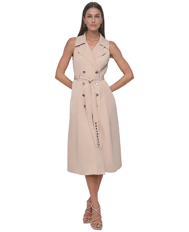 Dkny Women's Collared Belted Fit & Flare Sleeveless Dress