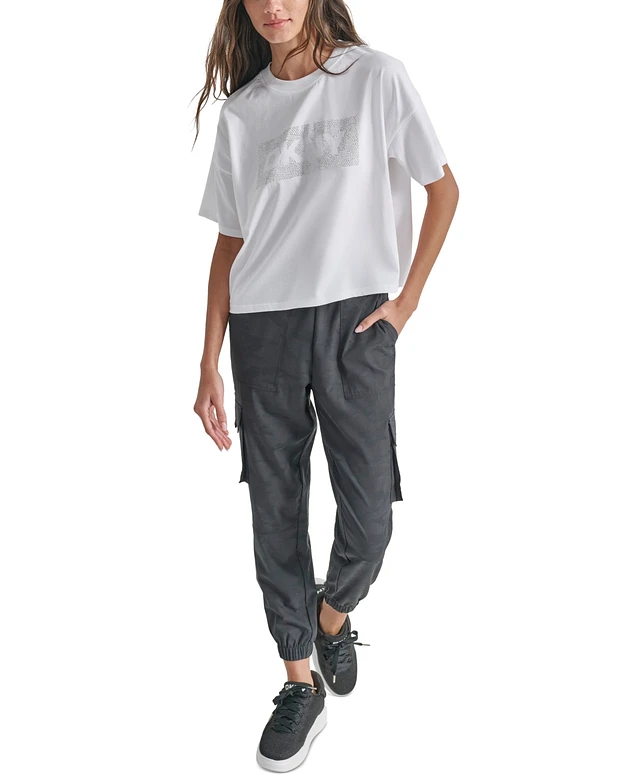 Dkny Women's Cotton Rhinestone-Graphic Cropped T-Shirt