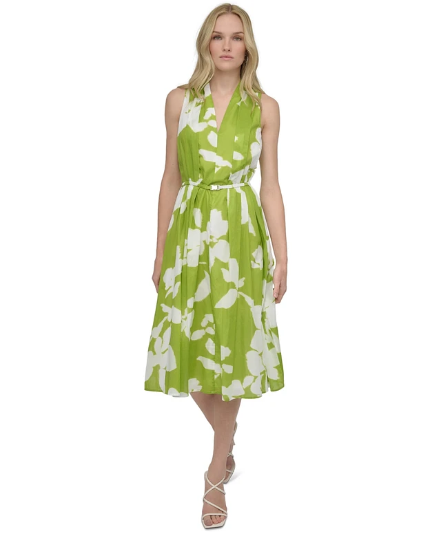 Dkny Women's Cotton V-Neck Belted A-Line Midi Dress