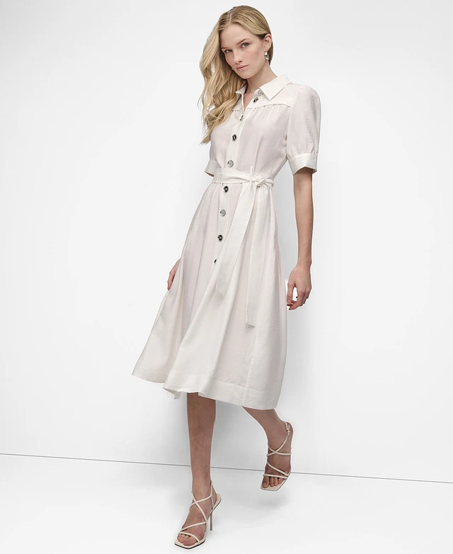 Dkny Women's Elbow-Sleeve Belted Midi Shirtdress