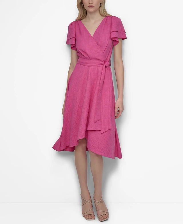 Dkny Women's Flutter-Sleeve Side-Tie Faux-Wrap Dress