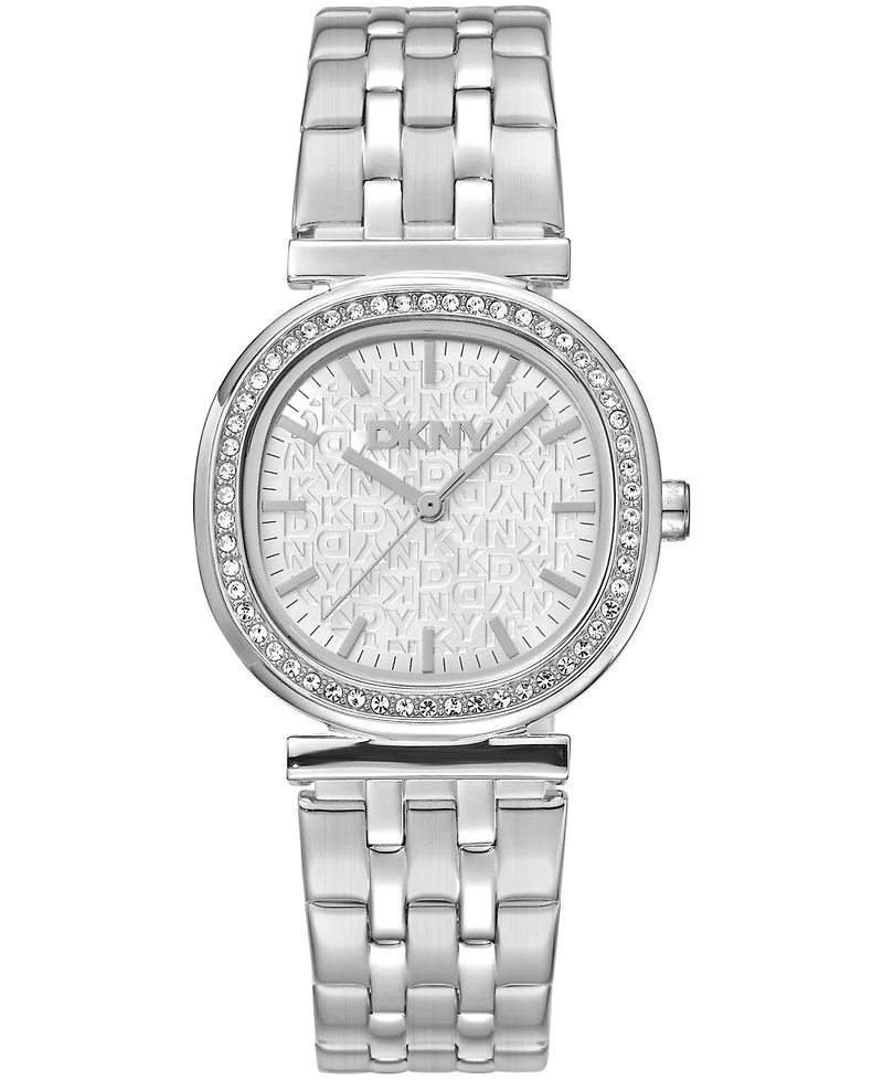 Dkny Women's Silver Dial Crystal Bezel Stainless Steel Bracelet Watch, 30mm