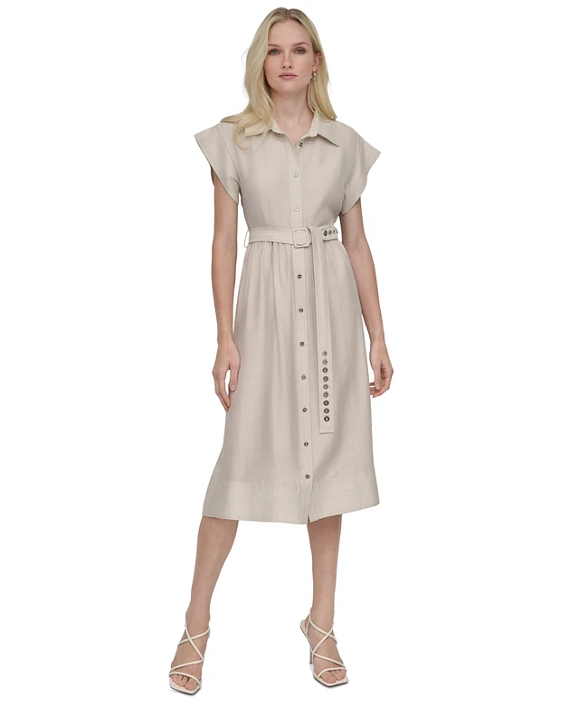 Dkny Women's Spread-Collar Button-Front Tie-Waist Dress