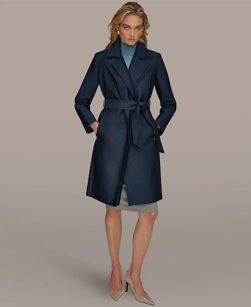 A chic double-collar design brings modern style to this belted trench coat from Donna Karan New York.