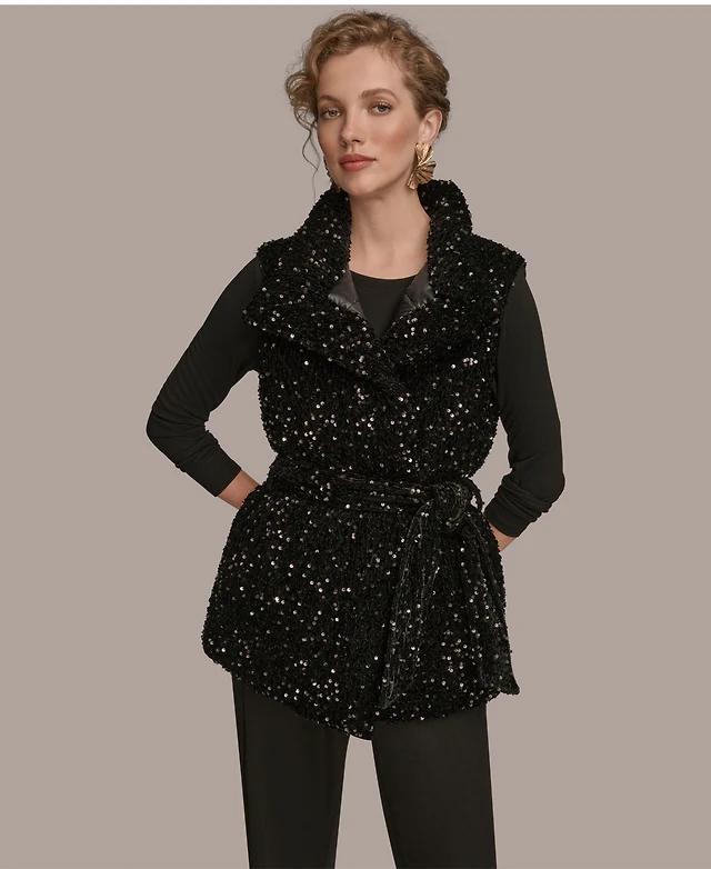 Donna Karan New York Women's Tie Waist Sequin Vest