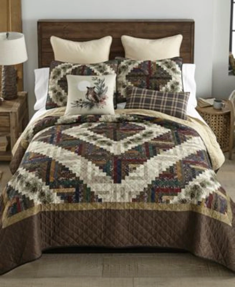 Elevate your bedroom decor with the Donna Sharp Whitley Quilt Set. Inspired by the classic log cabin quilt pattern, this handsome bedding collection showcases a striking central diamond shape, bringing warmth and character to any space. Crafted from ultra-soft microfiber, this quilt features an array of forest and botanical motifs that beautifully capture the essence of nature. Available in a rich palette of colors, this quilt set includes deep browns and taupe's, complemented by shades of olive green, warm neutrals, navy, deep gold, tan, almond, wine, and burgundy.