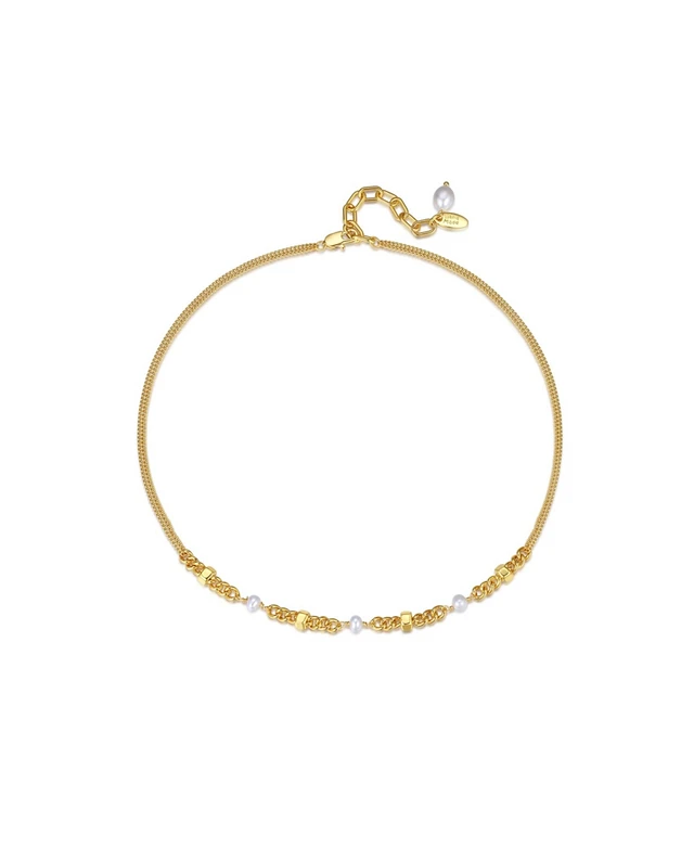 Sterling Silver 14K Gold Plated with Freshwater Pearl Layered Necklace