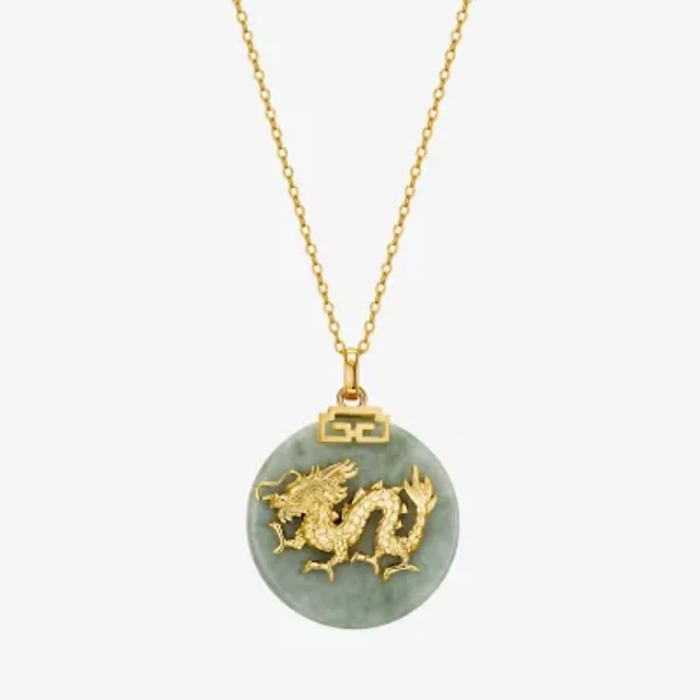 Dragon Womens Genuine Green Jade 18K Gold Over Silver 18 Inch Pendant Necklace