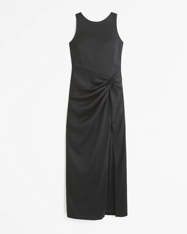 Long-Sleeve Mesh Asymmetrical Draped Maxi Dress