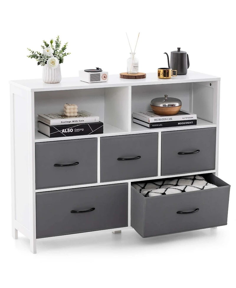 This sturdy dresser provides ample storage space, which can easily hold your decoration, book and magazine. The organizer is made of high-quality boards for durability. Extra support leg in the center ensures structural stability.