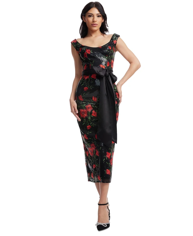 Dress the Population Women's Blakely Sweetheart-Neck Sequin Bodycon Midi