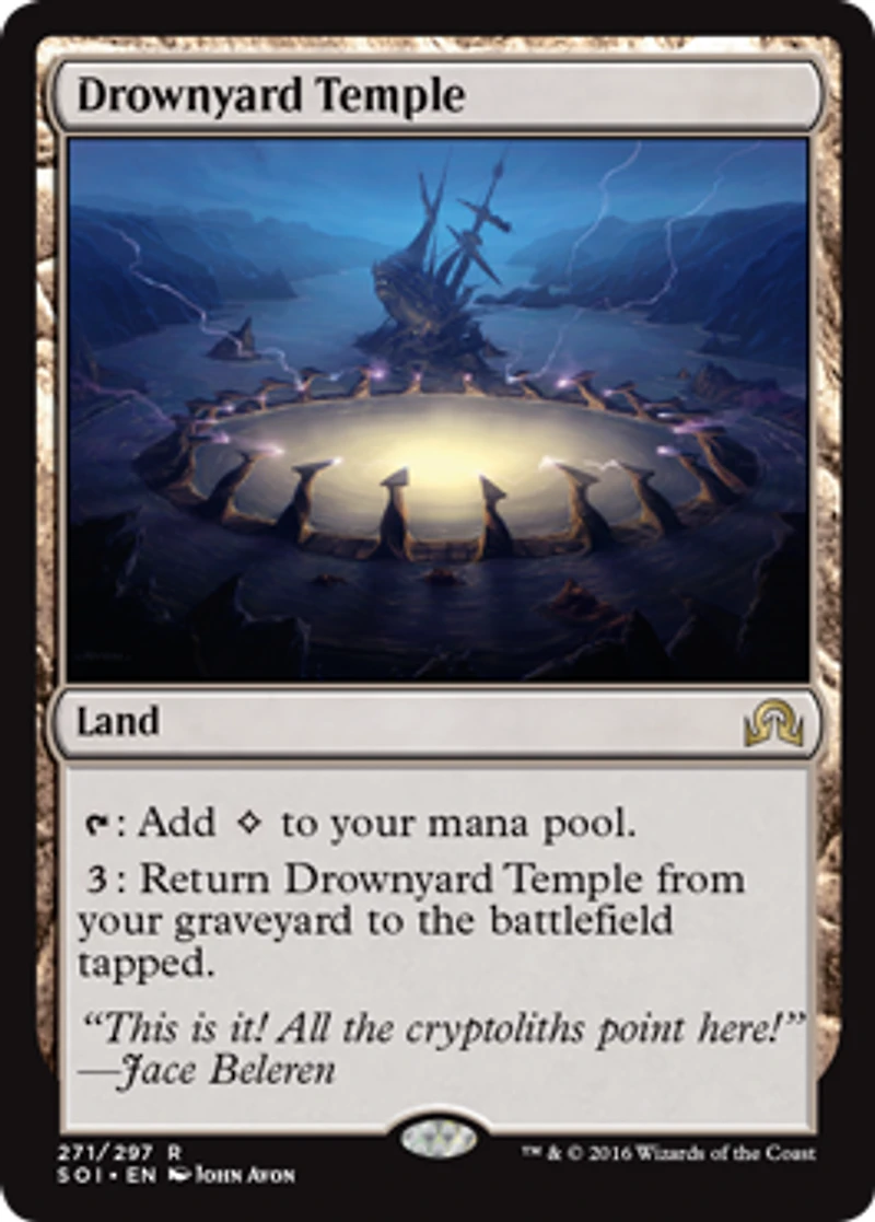 T: Add 1 to your mana pool. 3: Return Drownyard Temple from your graveyard to the battlefield tapped.