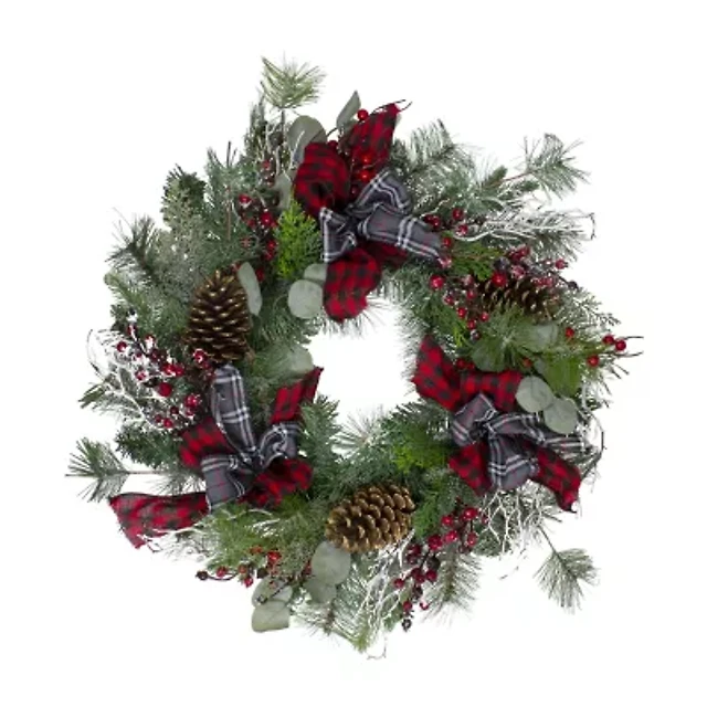 Dual Plaid and Berries Artificial Christmas Wreath - 24-Inch Unlit
