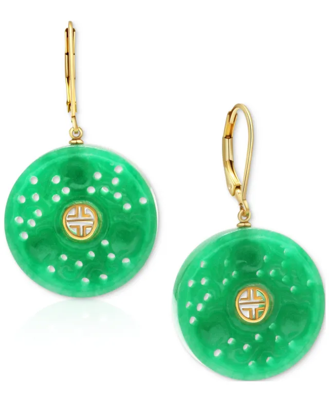 Dyed Green Jade Disc Leverback Drop Earrings in 14k Gold-Plated Sterling Silver