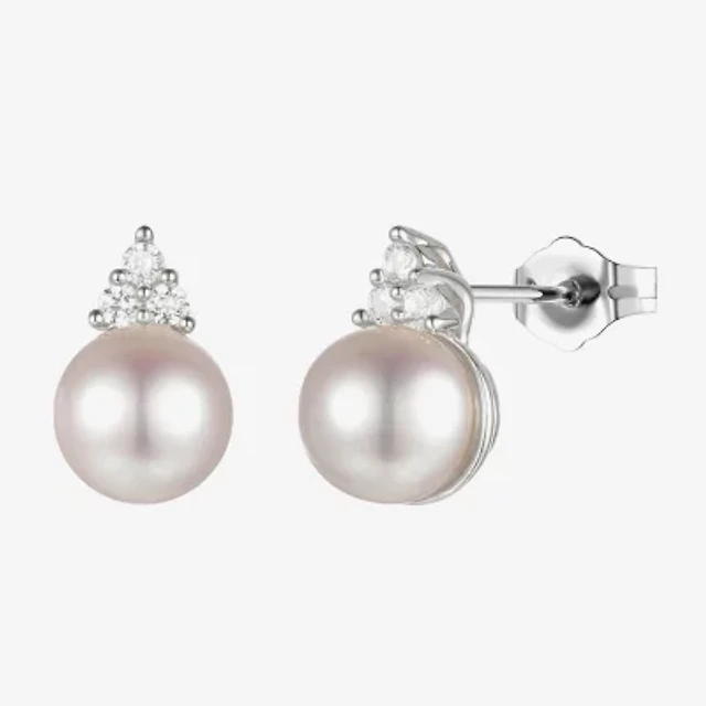 Cultured Freshwater Pearl Sterling Silver 8mm Ball Stud Earrings