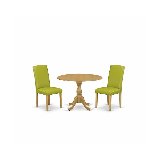 East West Furniture 3 Piece Kitchen Table Set - Oak Breakfast Table and 2 Autumn Green Pu Leather Chairs for Dining Room with High Back - Oak Finish