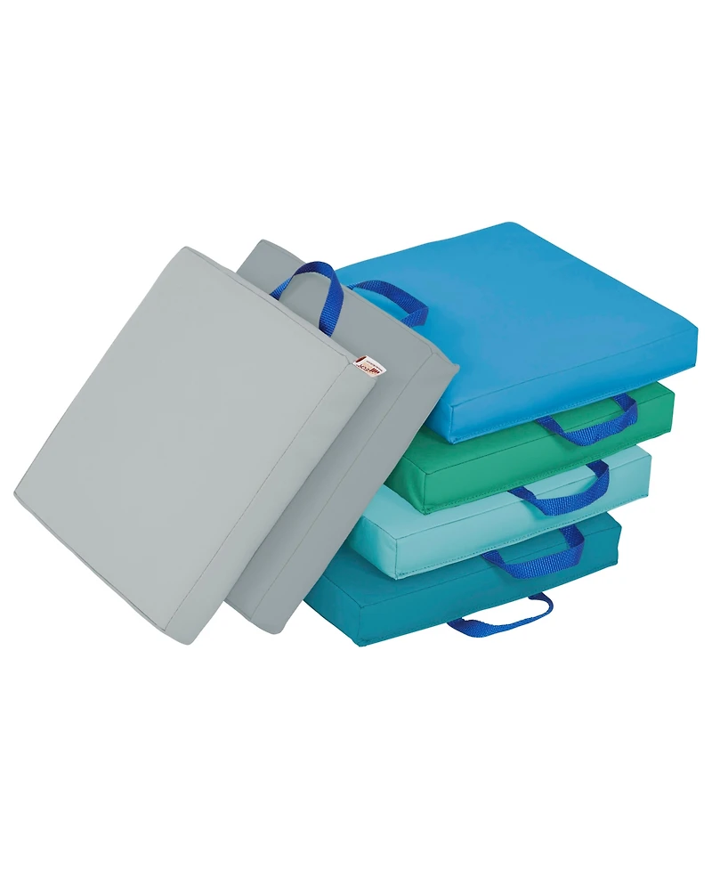 SoftZone Square Floor Cushions with Handles are an easy way to implement flexible seating, and circle up for story time, playtime, and other floor activities. This 6-piece set of cushions adds padded comfort when sitting on the floor in daycares, preschools, classrooms, or home learning environments.