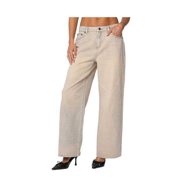 Edikted Women's Raelynn Washed Low Rise Jeans