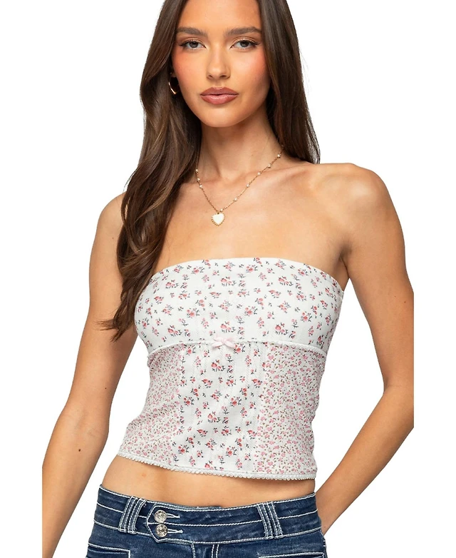 Edikted Women's Mixed Floral Pointelle Tube Top