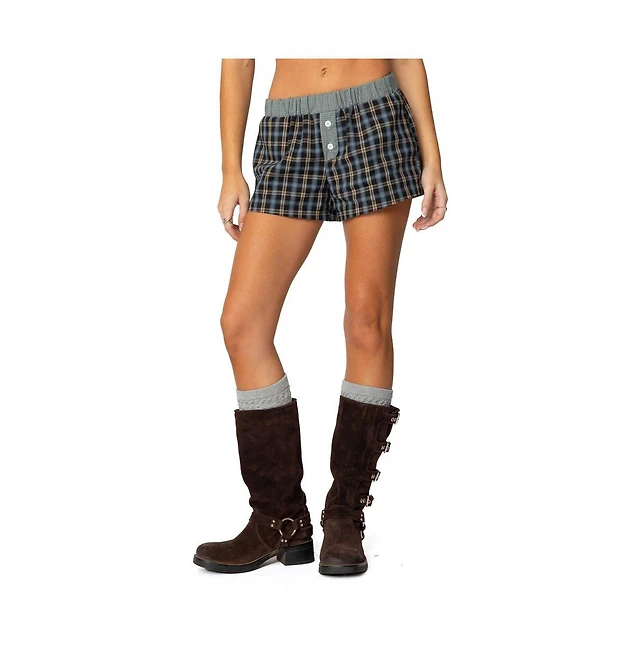 Edikted Women's Mixed Plaid Boxer Shorts