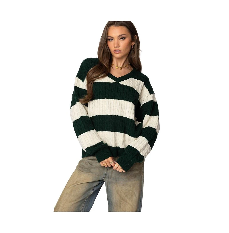 Edikted Women's Oversized Striped Cable Knit Sweater