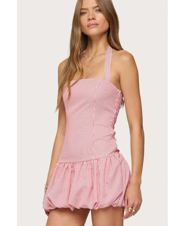 Edikted Women's Pinstripe Bubble Skirt Mini Dress