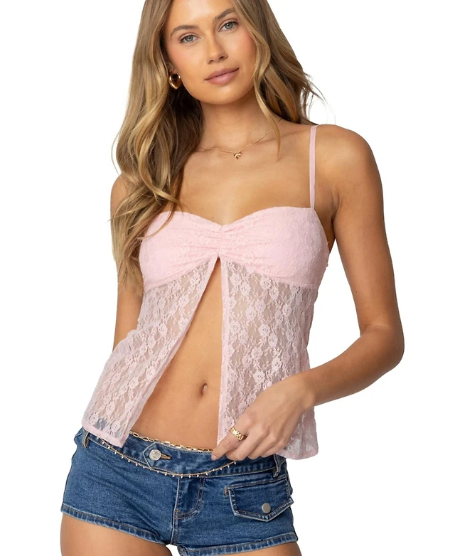 Edikted Womens Sheer Lace Cut Out Tank Top