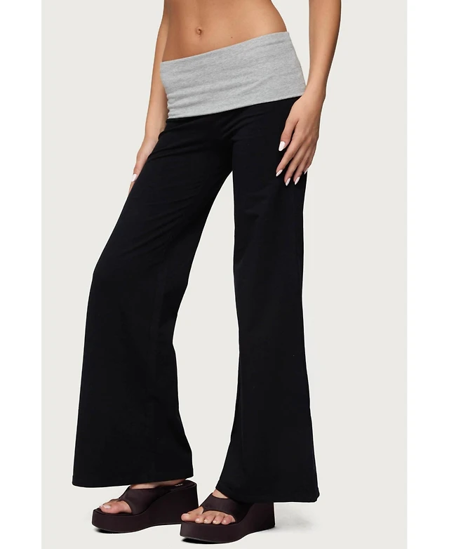 Edikted Womens Wide Leg Contrast Fold Over Pants