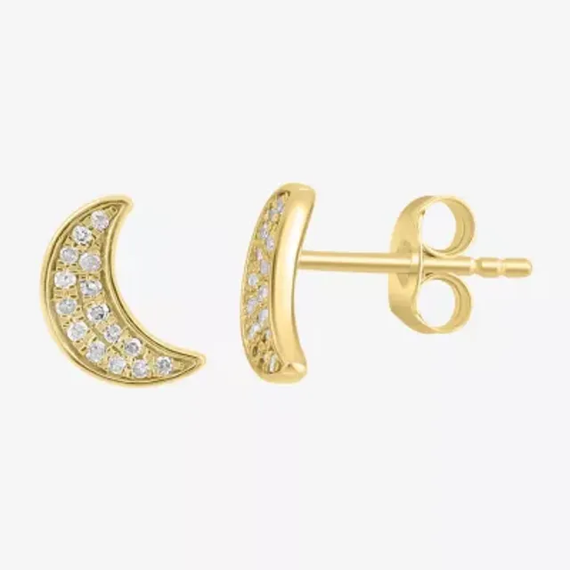 Effy 1/10 CT. T.W. Natural White Diamond 14K Gold Over Silver Sterling Silver 8.2mm Moon Stud Earrings