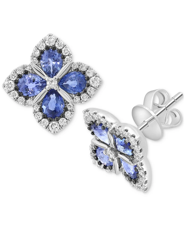 Effy Tanzanite (1-5/8 ct. t.w.) & Diamond (1/8 ct. t.w.) Flower Stud Earrings in 14k White Gold