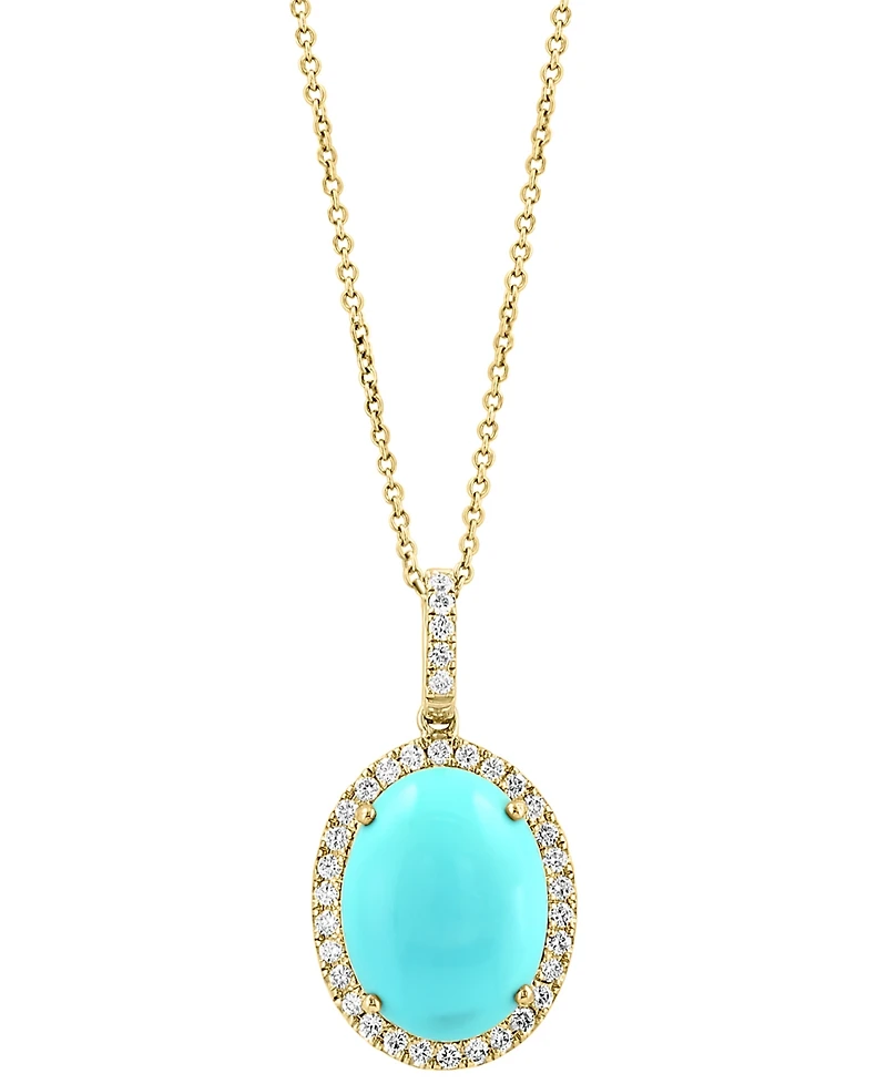 Effy Collection Diamond (1/5 ct. t.w.) and Turquoise Pendant Necklace in 14k Yellow Gold